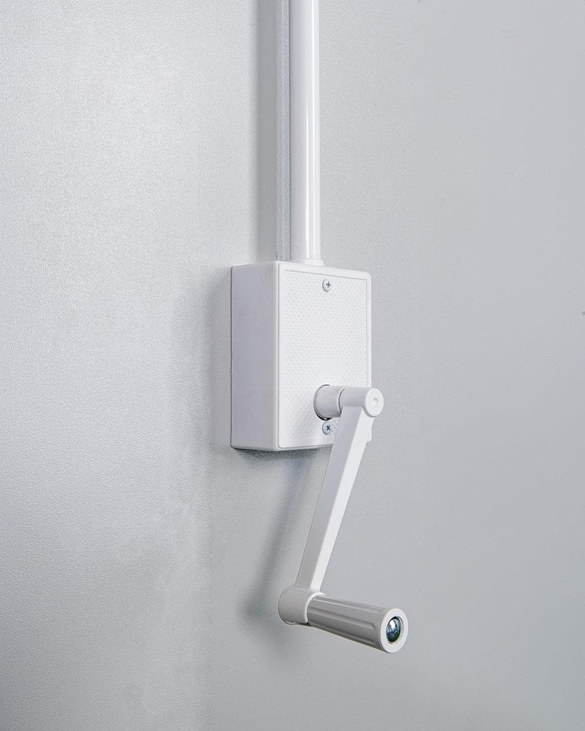 - Sistema de elevación y bajada a través de un torno con manivela, con un fácil manejo para todas las personas