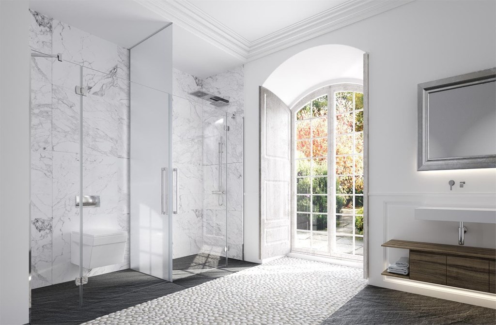 - Mampara de ducha con posibilidad de apertura corredera, plegable o abatible según modelo adaptándonos a cualquier característica especial de cada cuarto de baño